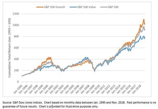 Investoři zaměřující se na hodnotové akcie svoji strategii často obhajují tvrzením, že prudké zdražování růstových titulů není udržitelné. Faktem ovšem je, že hodnotové tituly si hůře než trh vedou třeba i od roku 1995, tedy v horizontu, který zahrnuje nejen finanční krizi z let 2007 a 2008, ale i splasknutí technologické bubliny z přelomu tisíciletí.