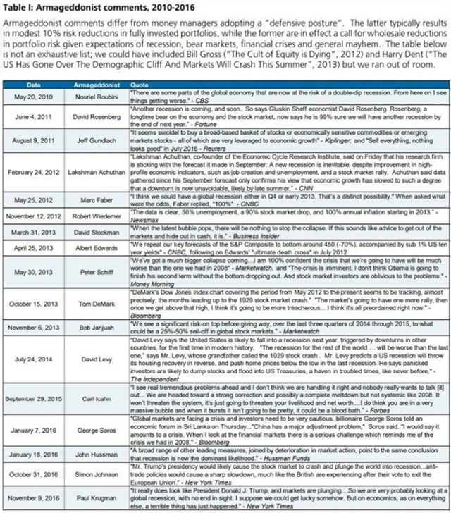Michael Cembalest, který šéfuje tržním a investičním stratégům v JPMorgan Asset Management, toho měl dost, a tak si některé autory negativních predikcí z uplynulých let trochu proklepl. Byli mezi nimi George Soros, Carl Icahn, Jeffrey Gundlach nebo třeba Paul Krugman.