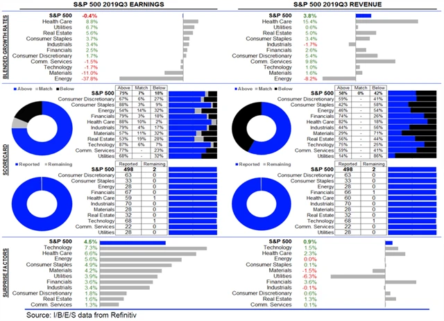 Jak se vyvíjejí odhady růstu či poklesu zisků a tržeb amerických firem za 3Q2019?