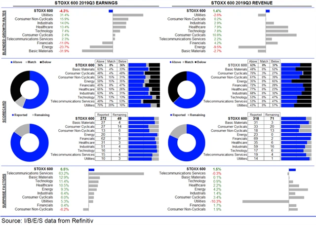 Jaká překvapení přinesly oznámené výsledky evropských firem za 3Q2019?