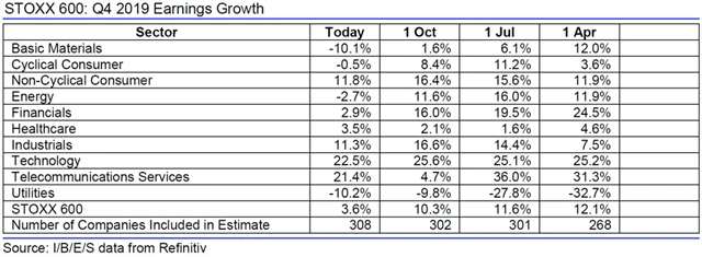 Jaký vývoj zisků a tržeb evropských firem analytici čekají za 4Q2019?