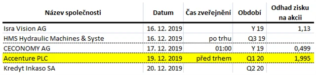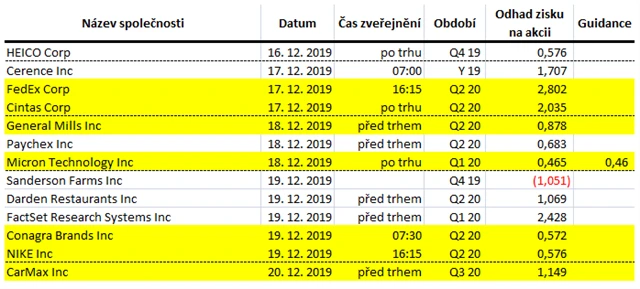 Očekávané výsledky světových firem v týdnu od 16. prosince (13. 12. 2019)