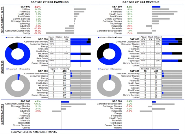 Jak se vyvíjejí odhady růstu či poklesu zisků a tržeb amerických firem za 4Q2019?