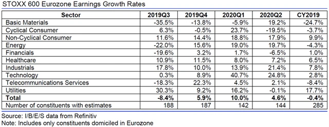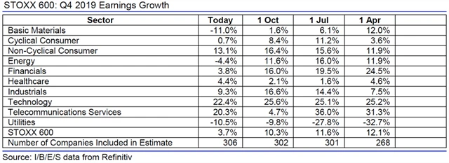 Jaký vývoj zisků a tržeb evropských firem analytici čekají za 4Q2019?