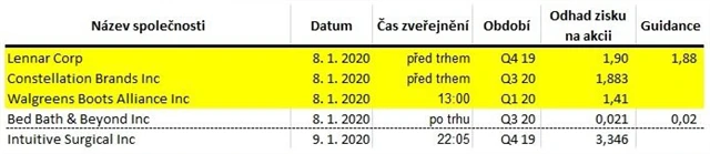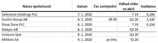 Očekávané výsledky světových firem v týdnu od 6. ledna (3. 1. 2020)