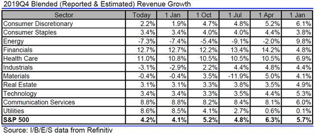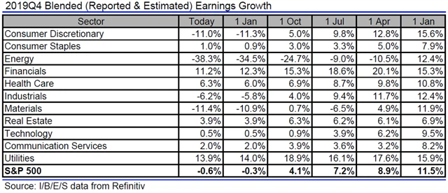 Jak se vyvíjejí odhady růstu či poklesu zisků a tržeb amerických firem za 4Q2019?