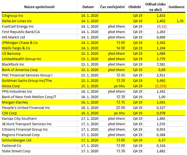Očekávané výsledky světových firem v týdnu od 13. ledna (10. 1. 2020)