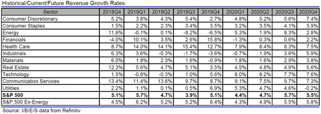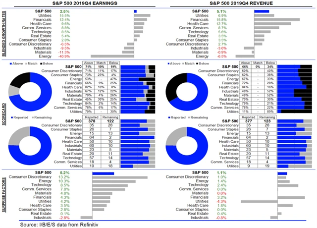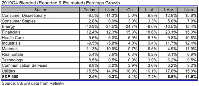 Jak se vyvíjejí odhady růstu či poklesu zisků a tržeb amerických firem za 4Q2019?