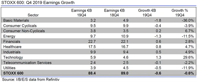 Jaký vývoj zisků a tržeb evropských firem za 4Q2019 čekají analytici?