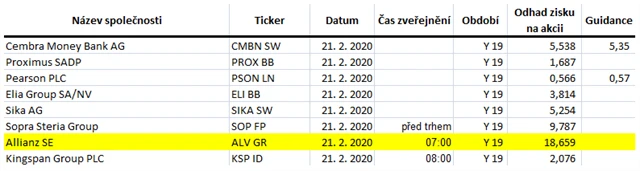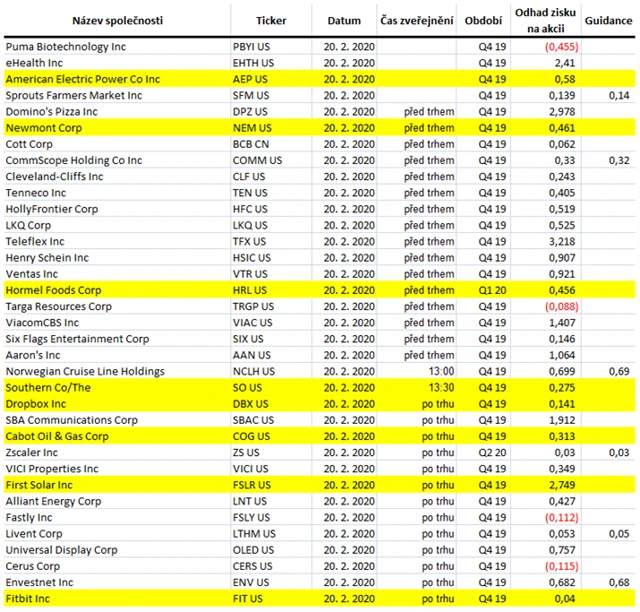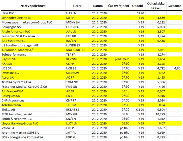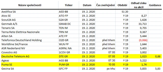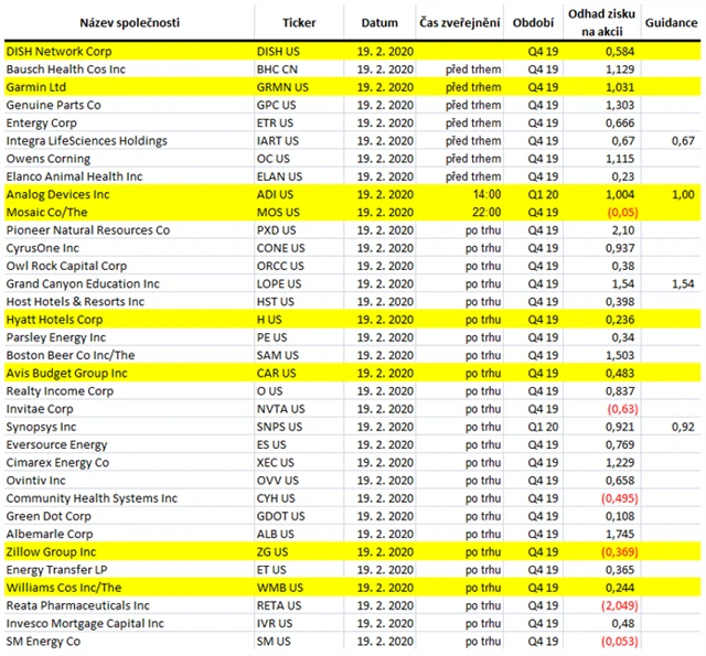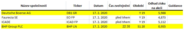Poznámka: Odhady analytiků jsou aktuální k 14. 2. 2020.