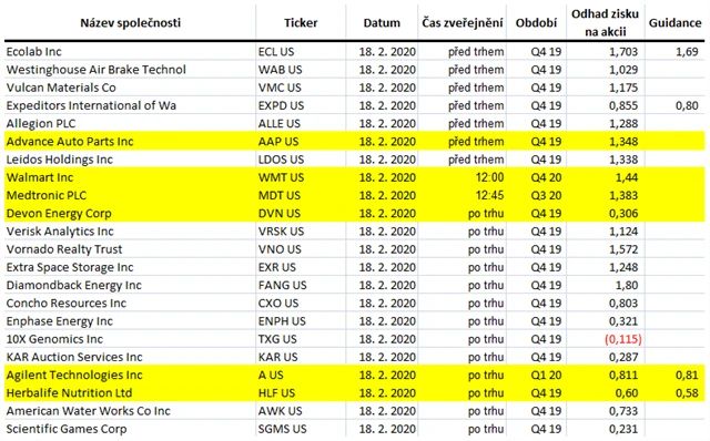 Očekávané výsledky světových firem v týdnu od 17. února (14. 2. 2020)