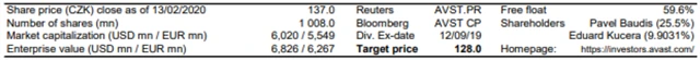 K pomalejšímu růstu Avastu v roce 2020 by měl přispět i nedávný hackerský útok, jenž zpomalil vydání nových produktů. Potenciálními růstovými impulzy by naopak mohly být pokračující úspěšná lokalizace, růst v segmentu internetu věcí, oživení v segmentu mobilních zařízení, potenciální fúze a akvizice (Avast generuje silné volné cash flow), případně možnost převzetí samotné firmy.