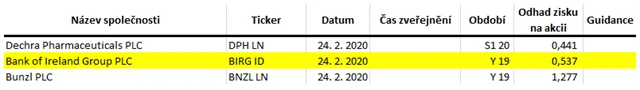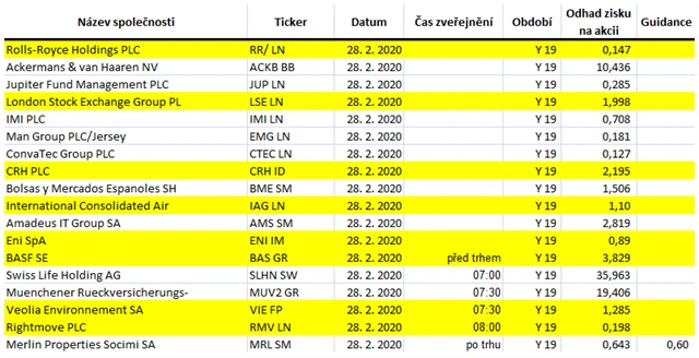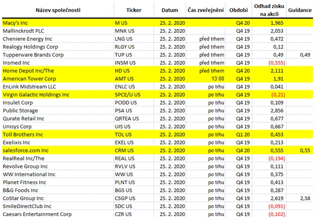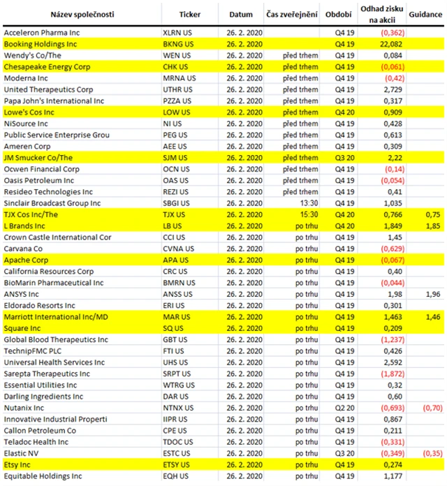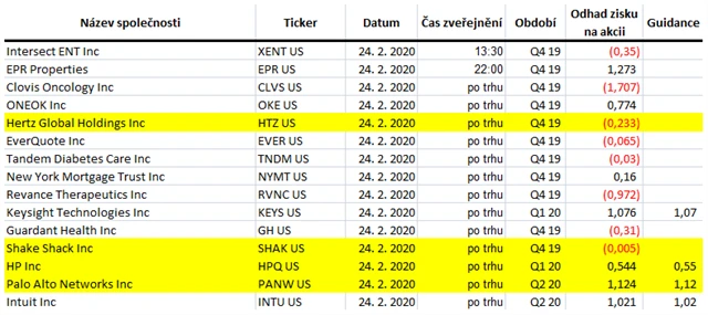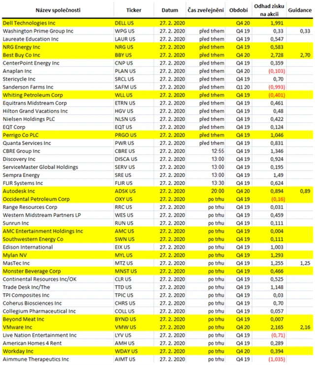 Očekávané výsledky světových firem v týdnu od 24. února (21. 2. 2020)