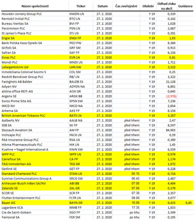Poznámka: Odhady analytiků jsou aktuální k 21. 2. 2020.
