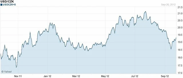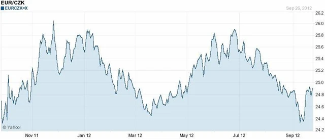 Na konci června atakoval kurz koruny hranici 26 korun za euro. Poté však začala koruna posilovat a do poloviny září získala téměř 6 %. Podpořil ji zájem zahraničních investorů, kteří díky uvolněné měnové politice a opatřením pro nápravu dluhové krize ze strany hlavních světových centrálních bank nakupovali rizikovější aktiva, mezi která patří i česká koruna, potažmo v ní denominované cenné papíry.