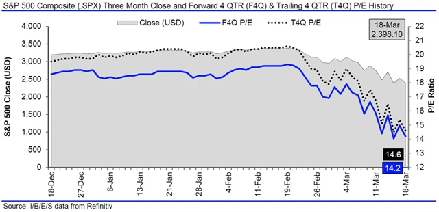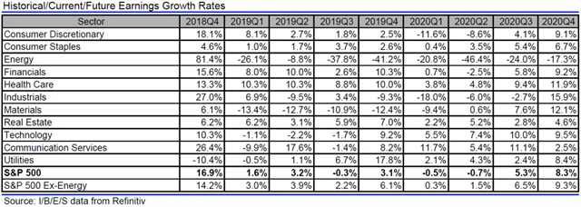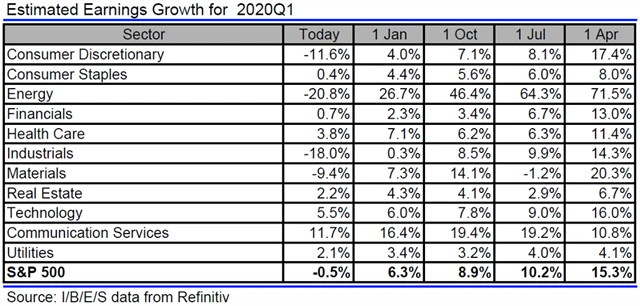 Jak se vyvíjejí odhady růstu či poklesu zisků a tržeb amerických firem za 1Q2020?