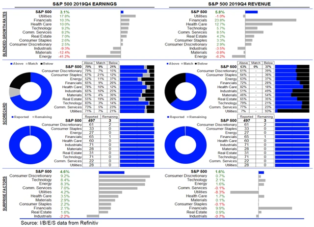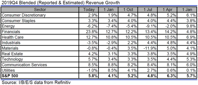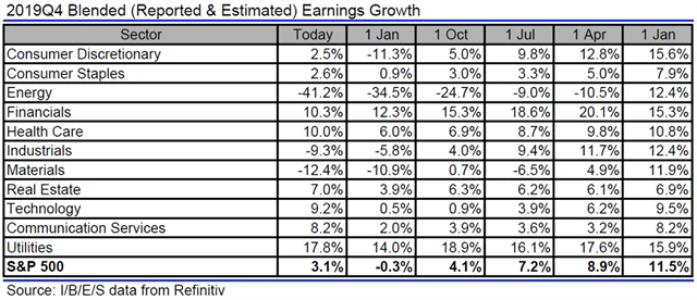 Jak se vyvíjely odhady růstu či poklesu zisků a tržeb amerických firem za 4Q2019?