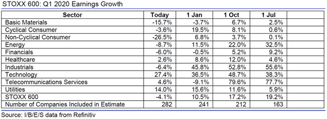 Jaký vývoj zisků evropských firem za 1Q2020 čekají analytici?