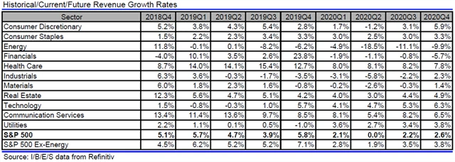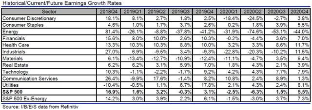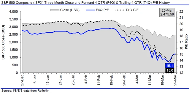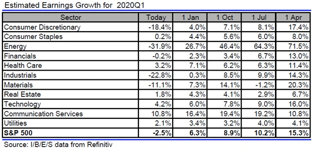 Jak se vyvíjejí odhady růstu či poklesu zisků a tržeb amerických firem za 1Q2020?