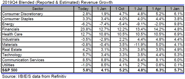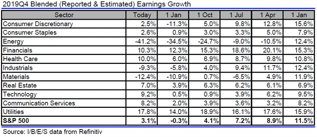 Jak se vyvíjely odhady růstu či poklesu zisků a tržeb amerických firem za 4Q2019?