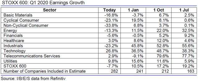 Jaký vývoj zisků evropských firem za 1Q2020 čekají analytici?