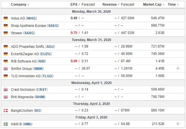 Které světové firmy představí výsledky hospodaření za uplynulý kvartál v týdnu od 30. března a jaké zisky v rámci indexů S&P 500 a STOXX Europe 600 očekávají analytici oslovení agenturou Refinitiv?
