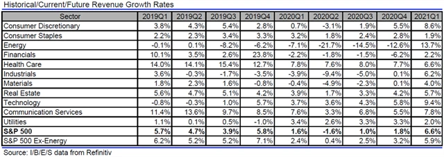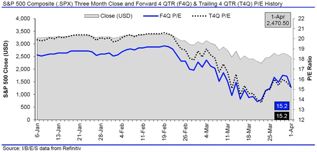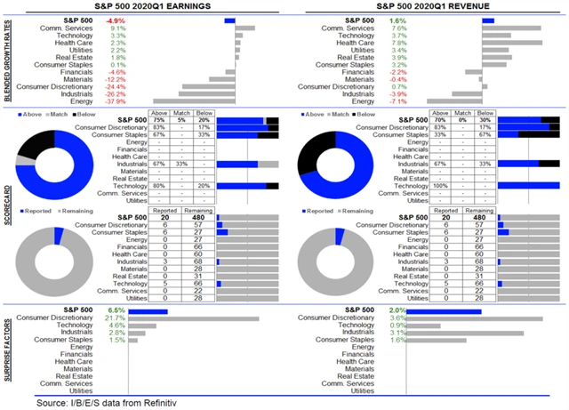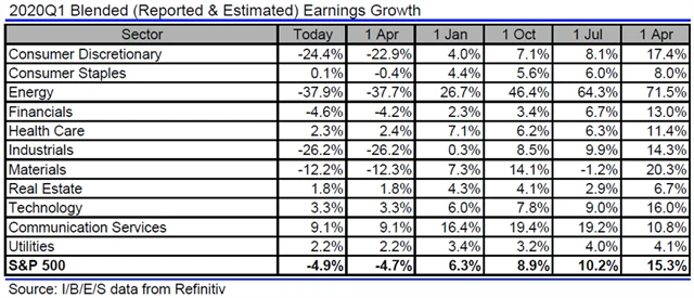 Jak se vyvíjejí odhady růstu či poklesu zisků a tržeb amerických firem za 1Q2020?