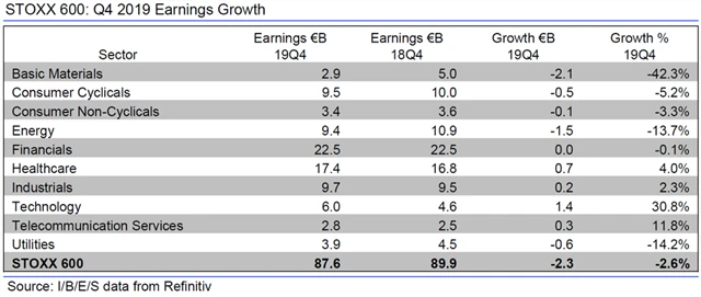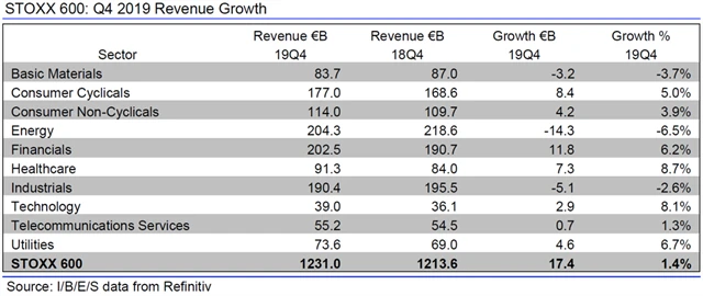 Jaký vývoj zisků a tržeb evropských firem za 4Q2019 čekali analytici?