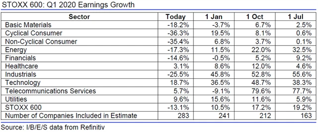 Jaký vývoj zisků evropských firem za 1Q2020 čekají analytici?
