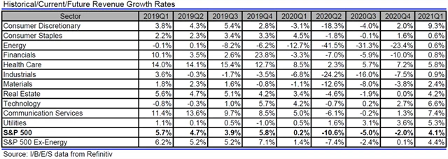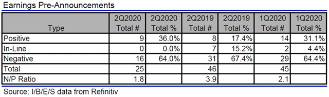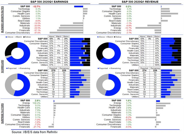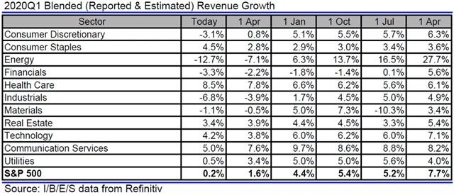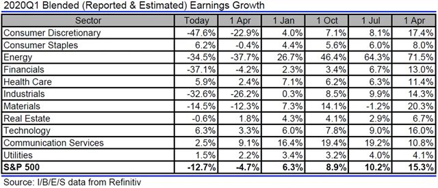 Jak se vyvíjejí odhady růstu či poklesu zisků a tržeb amerických firem za 1Q2020?