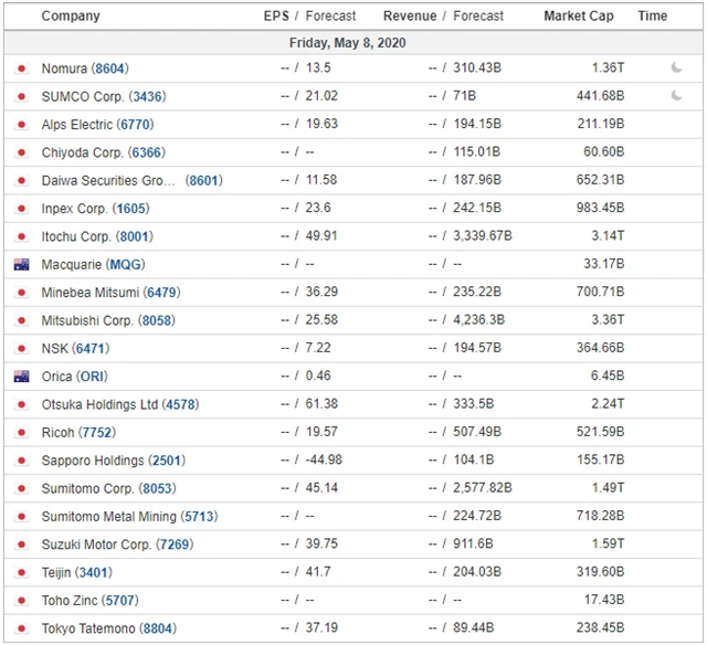 Níže najdete odhady výsledků jednotlivých společností, které oznamují hospodářská čísla v následujícím týdnu.