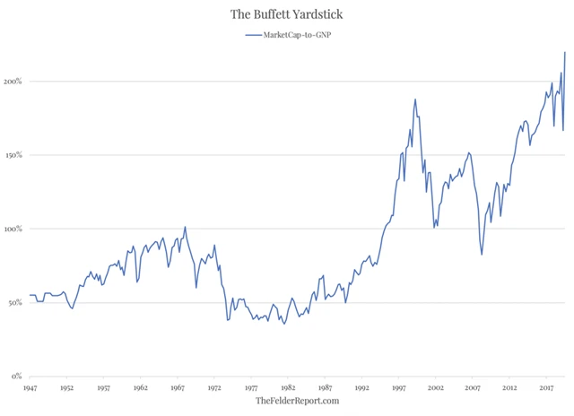 Výkonnost amerických akcií vykazuje historicky velice silnou negativní korelaci s poměrem hodnoty amerického akciového trhu k HDP, tedy oblíbeným ukazatelem ocenění akcií legendárního investora Warrena Buffetta.