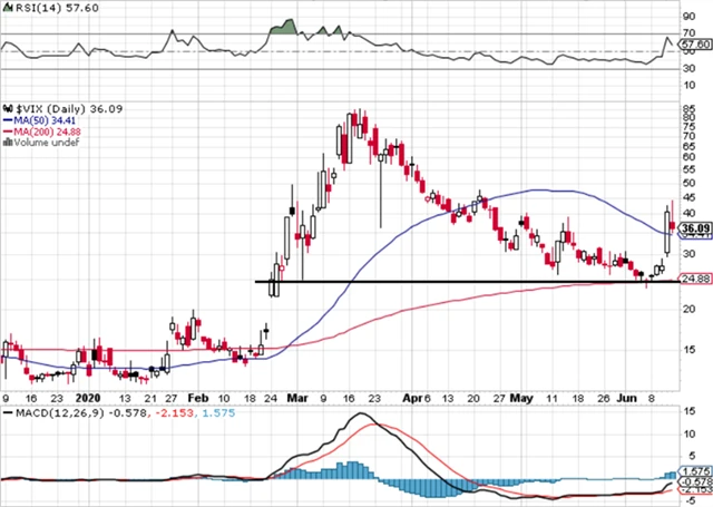 Po třech zelených týdenních svíčkách přišla jedna sytě červená. Dva ziskové dny (pondělí a pátek) nedokázaly vyvážit hlubokou čtvrteční ztrátu. Za červen je tak americký trh zhruba na nule. Ještě v pondělí přitom index S&P 500 smazal ztrátu za rok 2020 a dostal se 4,5 % pod historická maxima. Ve čtvrtek ale došlo po třech měsících opět k propadu o více než 5 % za den. Objem obchodů byl sice nadprůměrný, ale vzhledem k míře propadu nebyl tak vysoký, jako tomu bylo v březnu a dubnu.