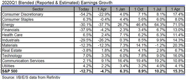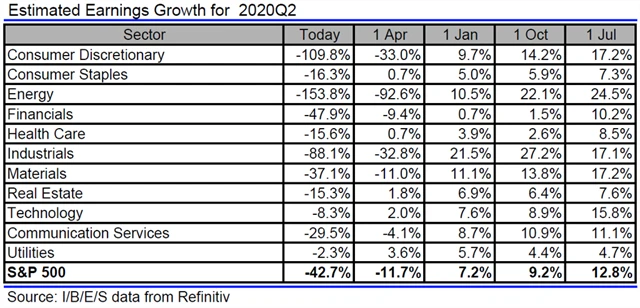 Jak se vyvíjely odhady růstu či poklesu zisků a tržeb amerických firem za 1Q2020?