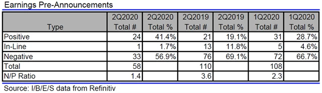 Jak se vyvíjejí odhady růstu či poklesu zisků amerických firem za 2Q2020?