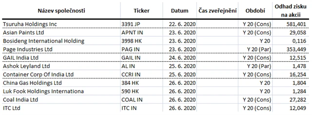 Poznámka: Odhady analytiků jsou aktuální k 18. 6. 2020.
