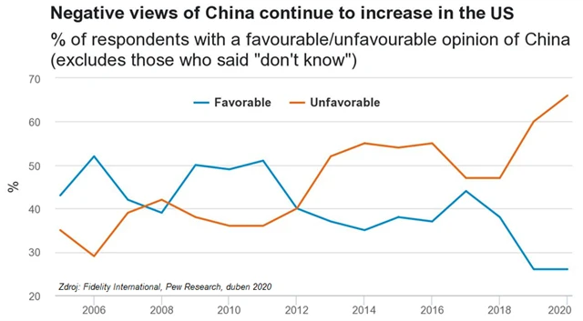 Tato taktika zatím funguje, protože negativní názory na Čínu v USA sílí. Zdá se proto, že vztahy mezi dvěma největšími ekonomikami světa se ve střednědobém horizontu budou zhoršovat.