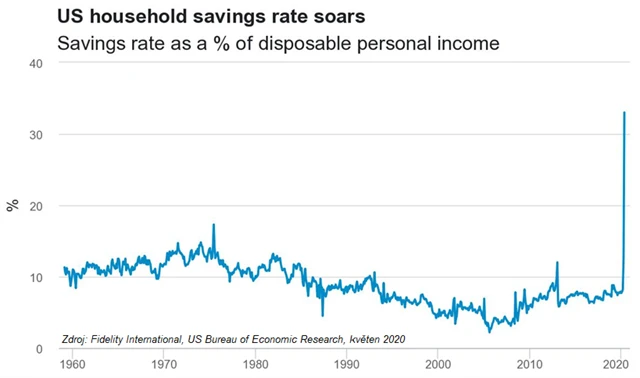 Masivní je i fiskální podpora hospodářství. Někteří lidé tak v prvních týdnech dostávali vyšší dávky v nezaměstnanosti, než byly jejich původní mzdy. V důsledku toho míra úspor domácností vzrostla nad 30 %, což je nejvyšší hodnota za uplynulých 60 let. Počáteční signály z ekonomiky jsou poměrně slibné, spotřebitelská poptávka je silně podporována, výhled ovšem zůstává nejasný.