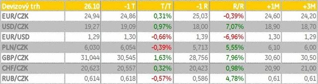 Koruna k euru oslabila jen lehce k hranici 25 Kč a zatím se zdá, že trh nereflektuje další možné uvolnění měnové politiky ze strany České národní banky. To se v poslední době zdá být stále pravděpodobnější. Naopak koruně mohlo minimálně krátkodobě pomoci doporučení JPMorgan k nákupu českých státních bondů, což by mohlo navýšit poptávku po české měně.