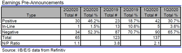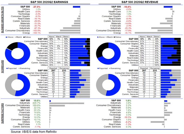 Jak se vyvíjejí odhady růstu či poklesu zisků a tržeb amerických firem za 2Q2020?