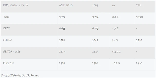 "Očekáváme mírný meziroční růst tržeb na 9,77 miliardy Kč (+0,2 %). Další kontrola nákladů by měla přispět k mírnému navýšení EBITDA marže na 32,7 % (+0,4 procentního bodu). Absolutní zisk EBITDA by měl vzrůst o 1,6 % na 3,2 miliardy Kč. Čistý zisk by pak měl být téměř beze změny na 1,37 miliardy Kč," napsal analytik Milan Vaníček z J&T Banky.