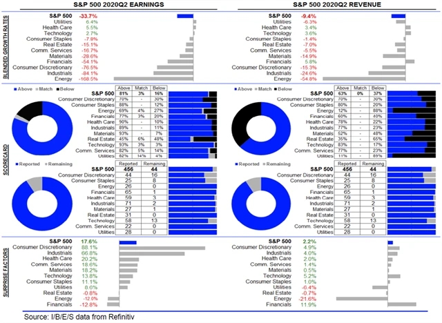 Jak se vyvíjejí odhady růstu či poklesu zisků a tržeb amerických firem za 2Q2020?