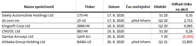 Očekávané výsledky světových firem v týdnu od 17. srpna