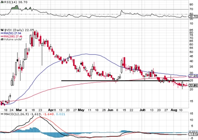 Index volatility VIX se postupně sune níže k úrovni 20 bodů. Po celý týden zůstal pod 25 a pro akcie začíná vysílat pozitivní signál.