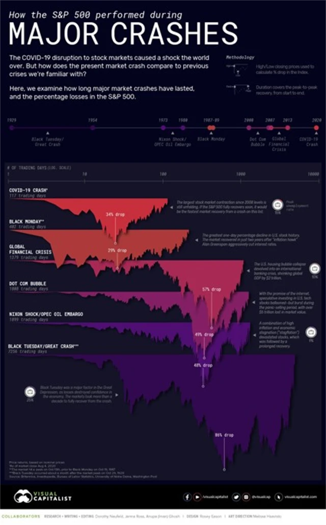 Před nástupem koronavirové krize dosáhl S&P 500 maxima 19. února. Síla, s jakou nemoc covid-19 ekonomiku zasáhla, ilustruje třeba prudký růst nezaměstnanosti ve Spojených státech, jejíž míra v dubnu vyskočila na 14,7 %. Index ztrácel na rekord až 34 %, k jeho překonání mu ovšem stačilo pouhých 126 obchodních dnů.