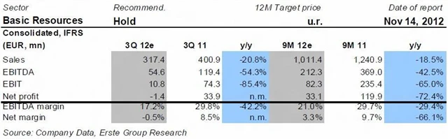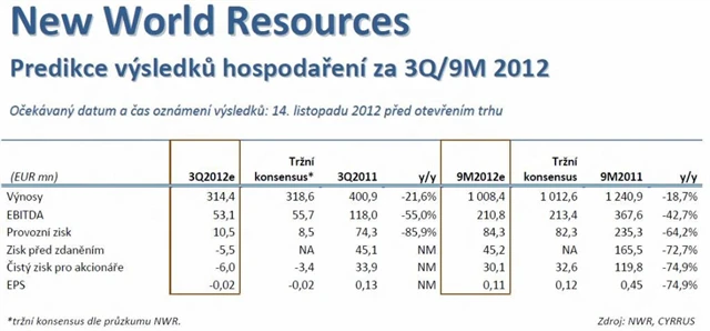 Pro investory by nemělo být podstatné, zda NWR ve 3Q2012 vykáže několik milionů eur ztráty či zisku, důležité jsou jiné faktory. Pozornost by měla být upřena především ke komentářům o vývoji tržního prostředí ve střední Evropě (ceny uhlí a koksu, úroveň zásob, poptávka z ocelárenského průmyslu) a případným novým informacím projektu v Polsku. Z pohledu samotných hospodářských výsledků za 3Q2012 vidíme jako klíčové to, jak se budou vyvíjet provozní náklady, protože při současných nízkých cenách uhlí je schopnost managementu NWR nacházet další úspory v OPEX stěžejním, i když velmi složitým úkolem.