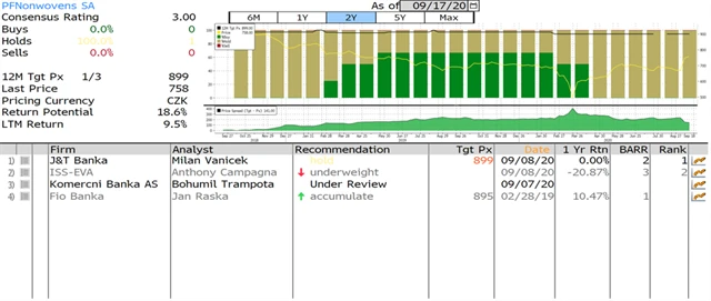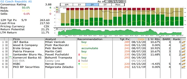 Jaký názor mají na akcie ČEZ, O2 Czech Republic, Avastu a PFNonwovens domácí a zahraniční analytici? Jaké jsou jejich dvanáctiměsíční cílové ceny a jak znějí jejich aktuální investiční doporučení? Nabízíme jejich přehled, jak jej k 17. 9. 2020 shromáždila agentura Bloomberg.