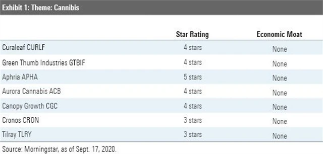 Postupná legalizace konopí a s ní spojené spekulace proměnily v posledních letech akcie v tomto odvětví v neobyčejně živou hmotu. Morningstar očekává další růst spotřeby a využívání konopí, legální trh v USA by měl podle analytiků do roku 2030 narůst ze současných zhruba 10 miliard na 80 miliard USD ročně. Růst bude poháněn legalizací v dalších státech (za něco se daně vybírat musejí, no ne?), která bude motivovat k přechodu na regulovaný trh i řadu uživatelů, kteří v současnosti pálí jointy takříkajíc načerno. Nehledě na další využití konopí v medicíně či průmyslu.