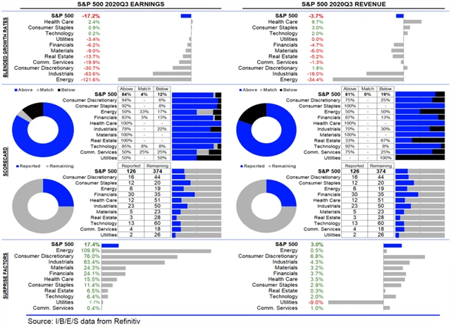 Jak se vyvíjejí odhady růstu či poklesu zisků a tržeb amerických firem za 3Q2020?