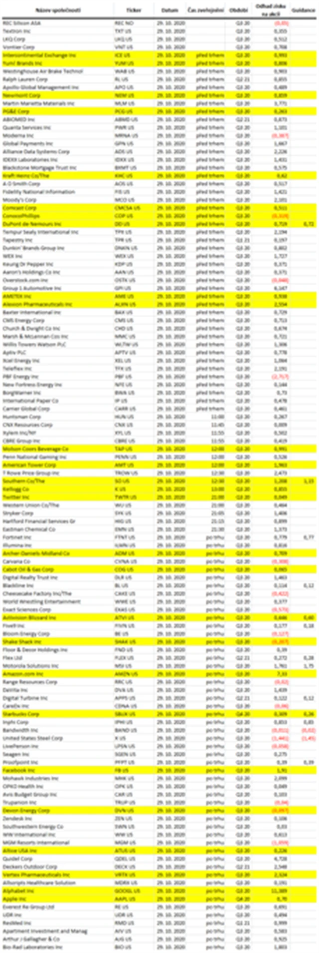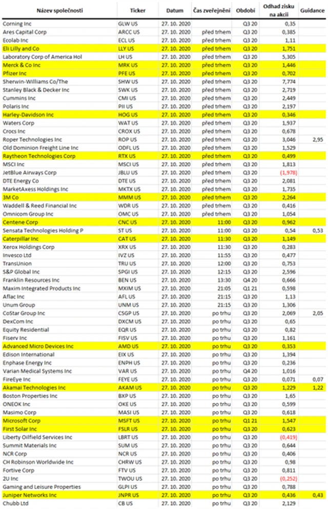 Poznámka: Odhady analytiků jsou aktuální k 22. 10. 2020.